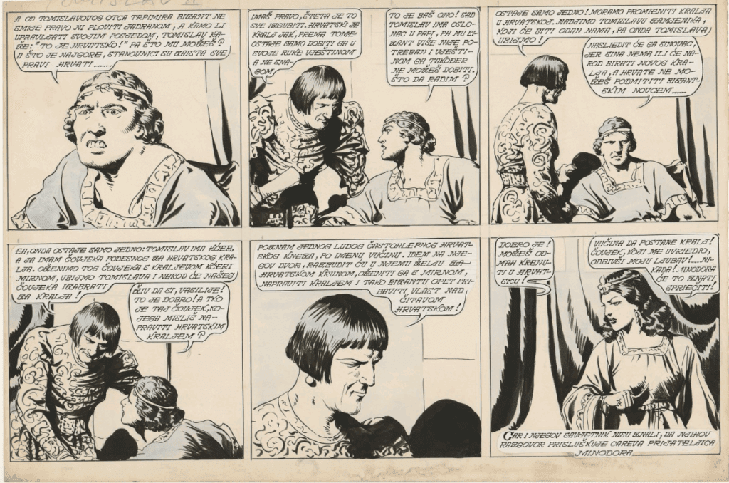 In addition to old maps, historical newspapers, prints, various ephemera and other fascinating items, the exhibited NSK’s resources will also include more recent holdings, such as the titles published in 1925, as part of the celebration of the Croatian Kingdom’s millennium, as well as the 1944 original comic strip panels by Andrija Maurović thematising the period of King Tomislav’s reign.