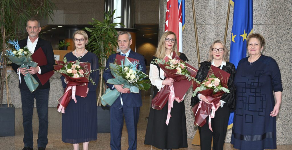 S lijeva na desno: Silvio Lebinac, prof. dr. sc. Marijana Tomić, dr. sc. Dinko Čutura, dr. sc. Breza Šalamon-Cindori, dr. sc. Dijana Machala, prof. dr. sc. Ivanka Stričević.