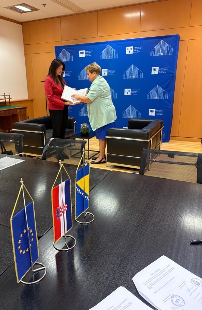 U Zagrebu je u utorak 14. listopada 2025. godine potpisan petogodišnji sporazum o suradnji Nacionalne i sveučilišne knjižnice u Zagrebu i Nacionalne i univerzitetske biblioteke Bosne i Hercegovine.