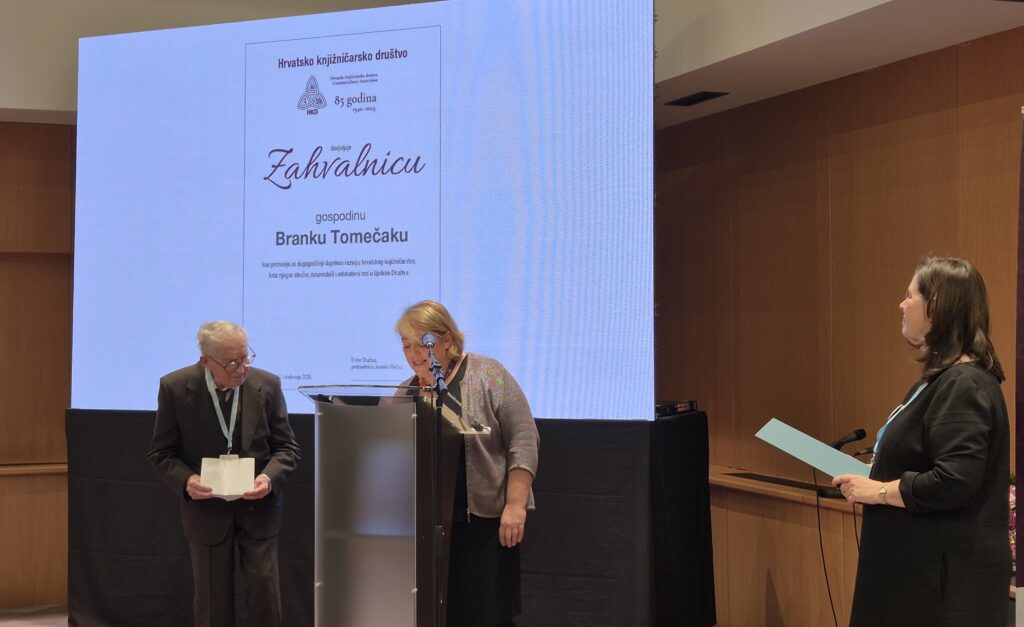 Uz priznanje Knjižnica godine, uručena je i posebna zahvalnica najstarijemu hrvatskom knjižničaru, gospodinu Branku Tomečaku.